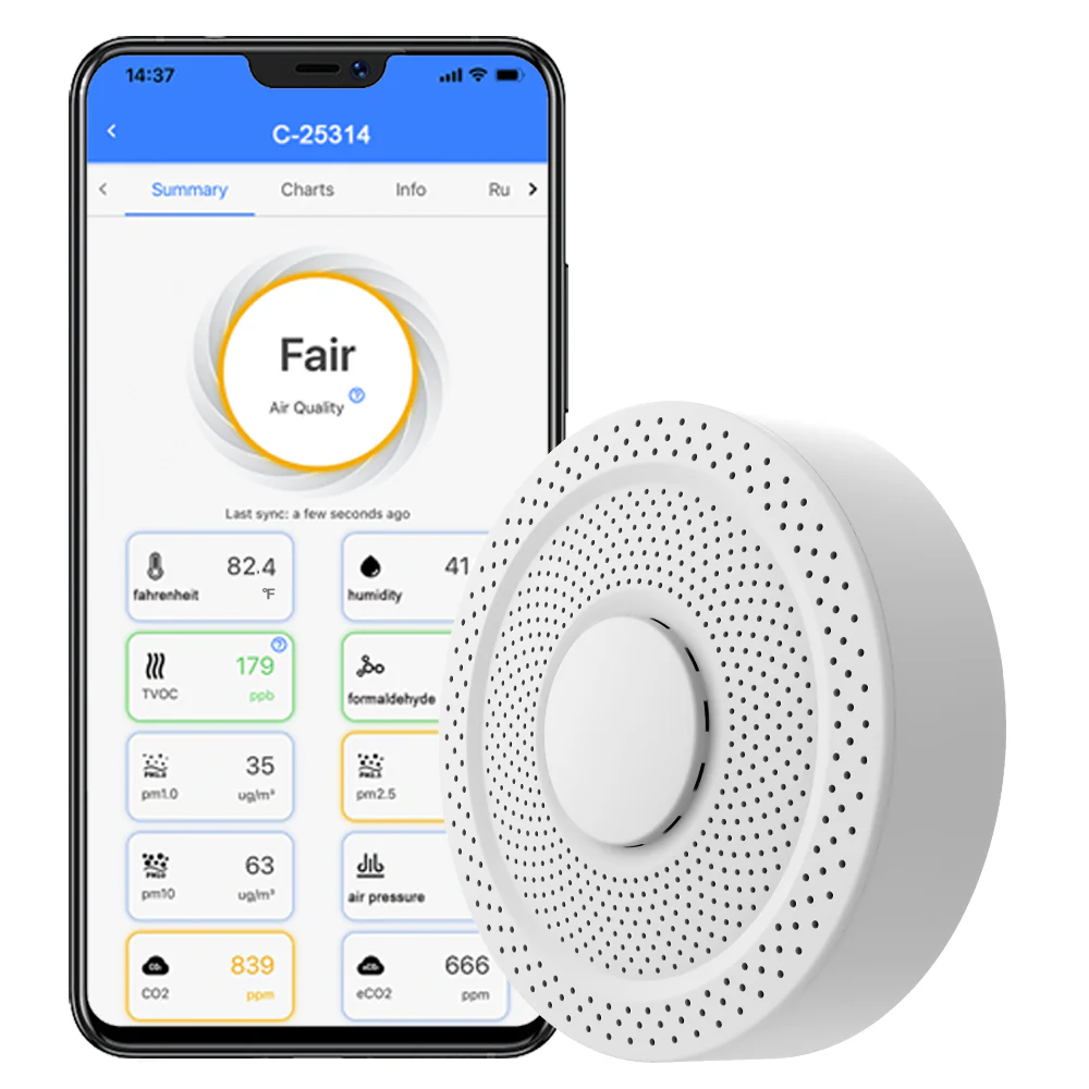 InceleUbiBot ® AQS1, bulut tabanlı akıllı bir hava kalitesi sensörüdür. Dahili endüstriyel sınıf sensörleri sıcaklık, nem, hava basıncı, CO2, TVOC, PM1.0, PM2.5, PM10 ve eCO2'yi izleyebilir.